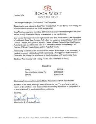 Boca Woods Nov. 2024 – 2025 Executive Member Dues