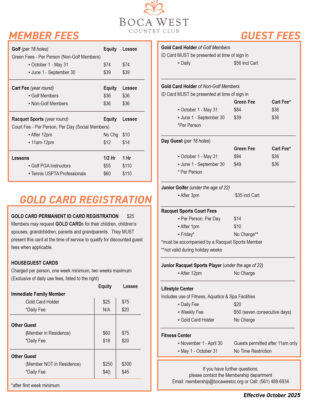 Boca Woods Nov. 2024 – 2025 Full Golf Membership
